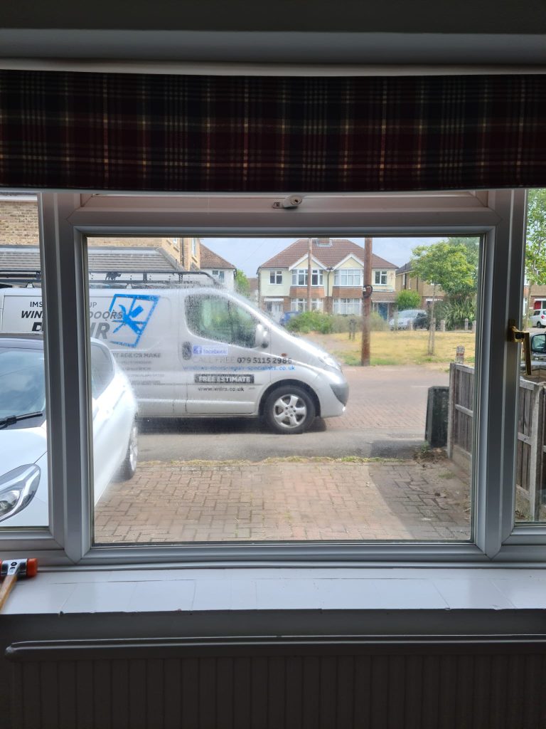 The seal has failed – moisture is trapped between the panes. We replace the glass unit, not the whole window. Usually £80–150* (call if price it’s accurate)